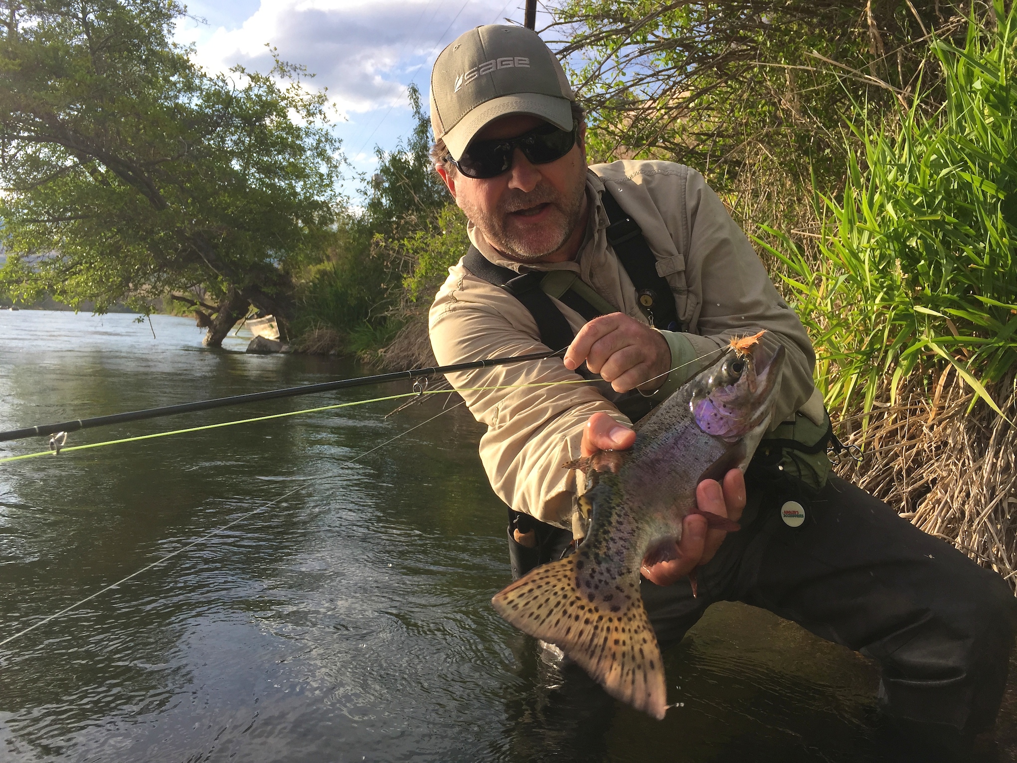 Phillip Dean with a well-fed Deschutes rainbow that pounced on a Norm Woods Special.